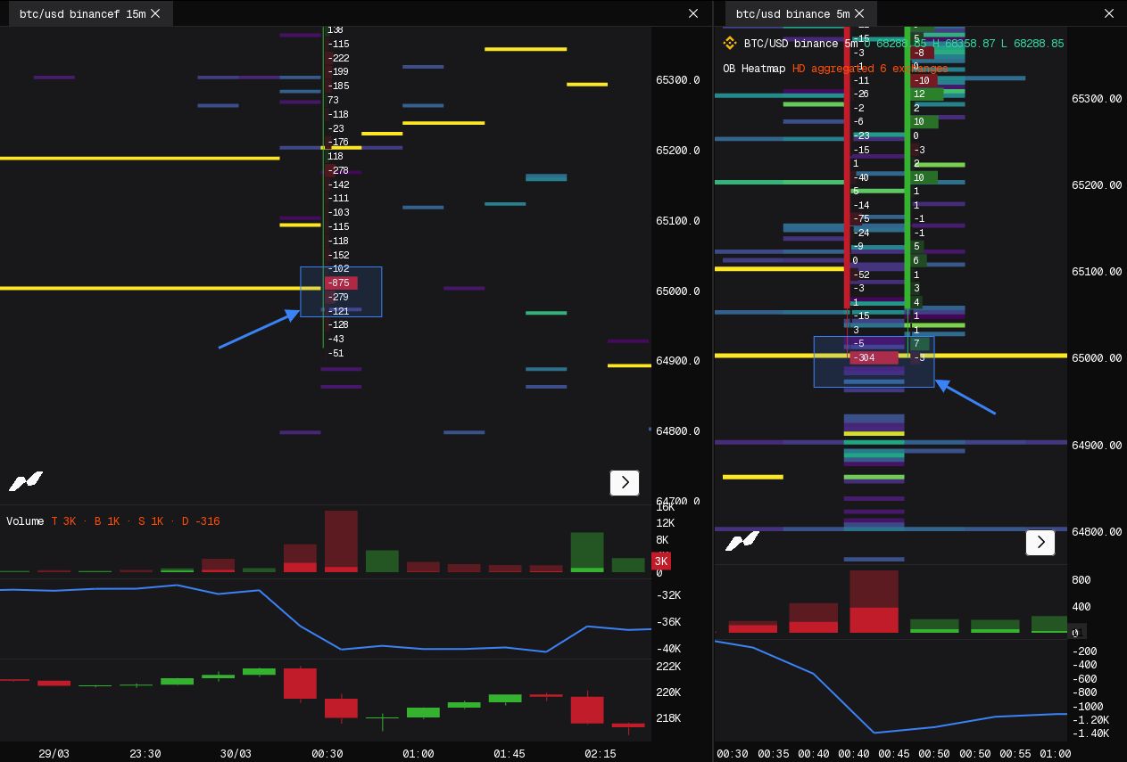 • Clean liquidity grab below 65k