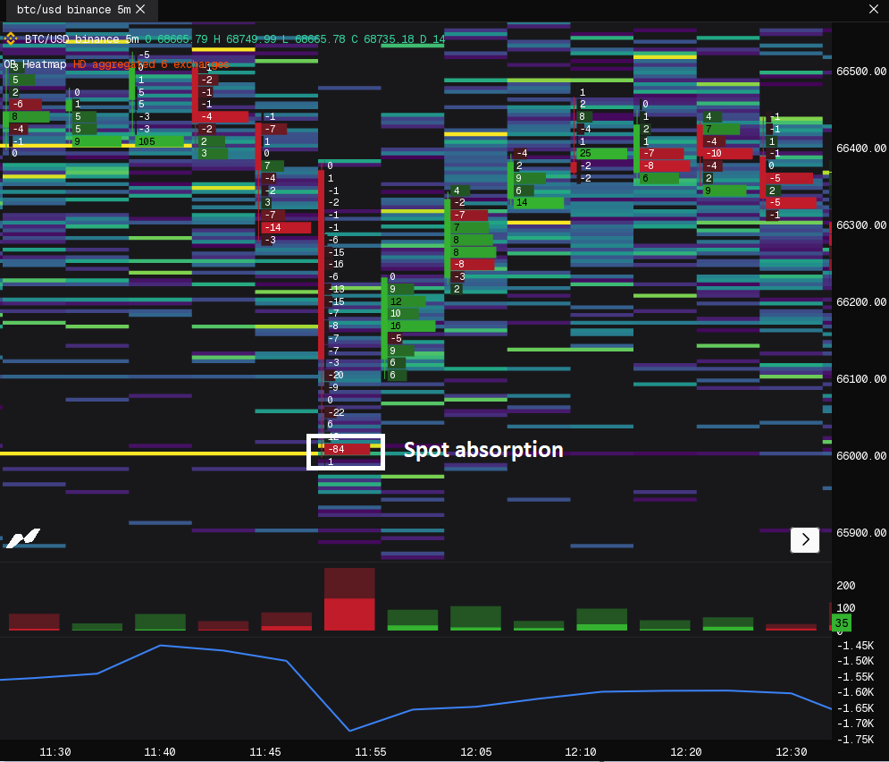 Combination of liquidation + spot absorption confirmed the long.